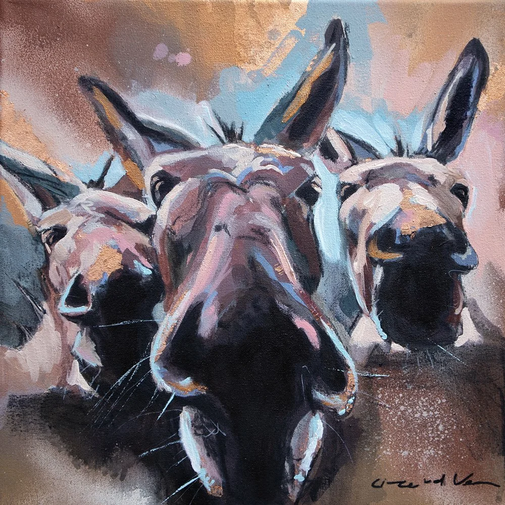 These charming paintings is a tribute to the strength and resilience of these iconic working animals. Their mischievous expressions will add a touch of quirky charm to any room. Perfect for animal lovers with a sense of humor!