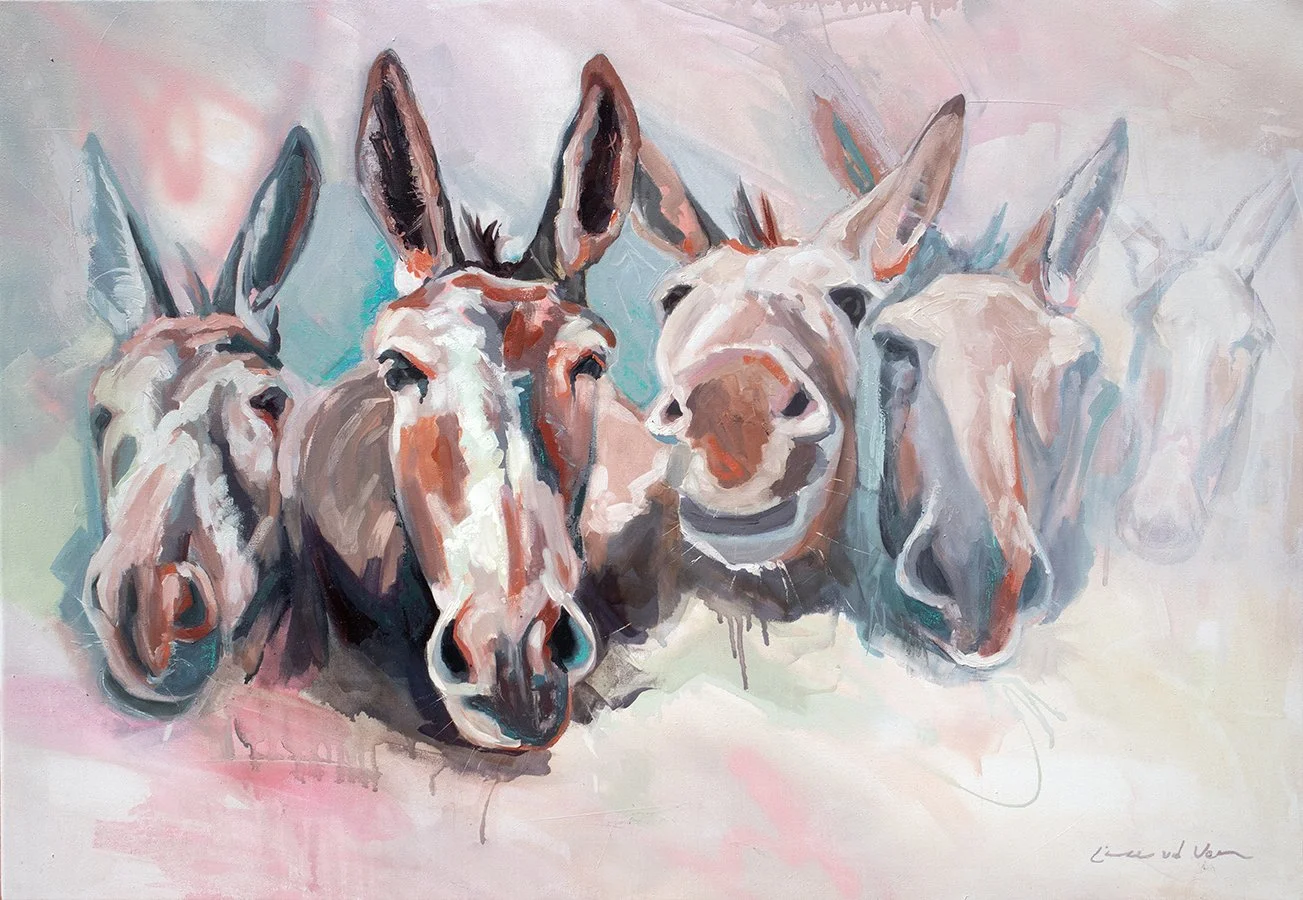 Five donkeys, infinite charm. Add a touch of whimsy and artistry to your walls.