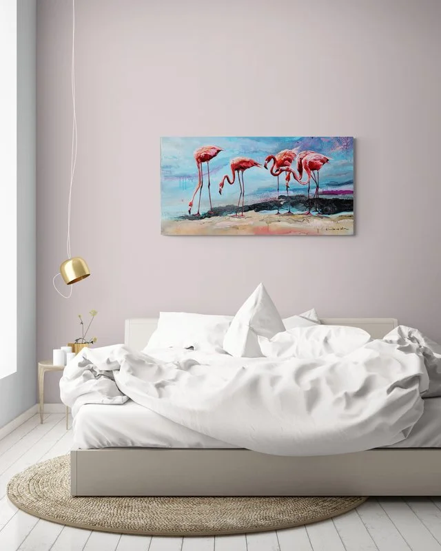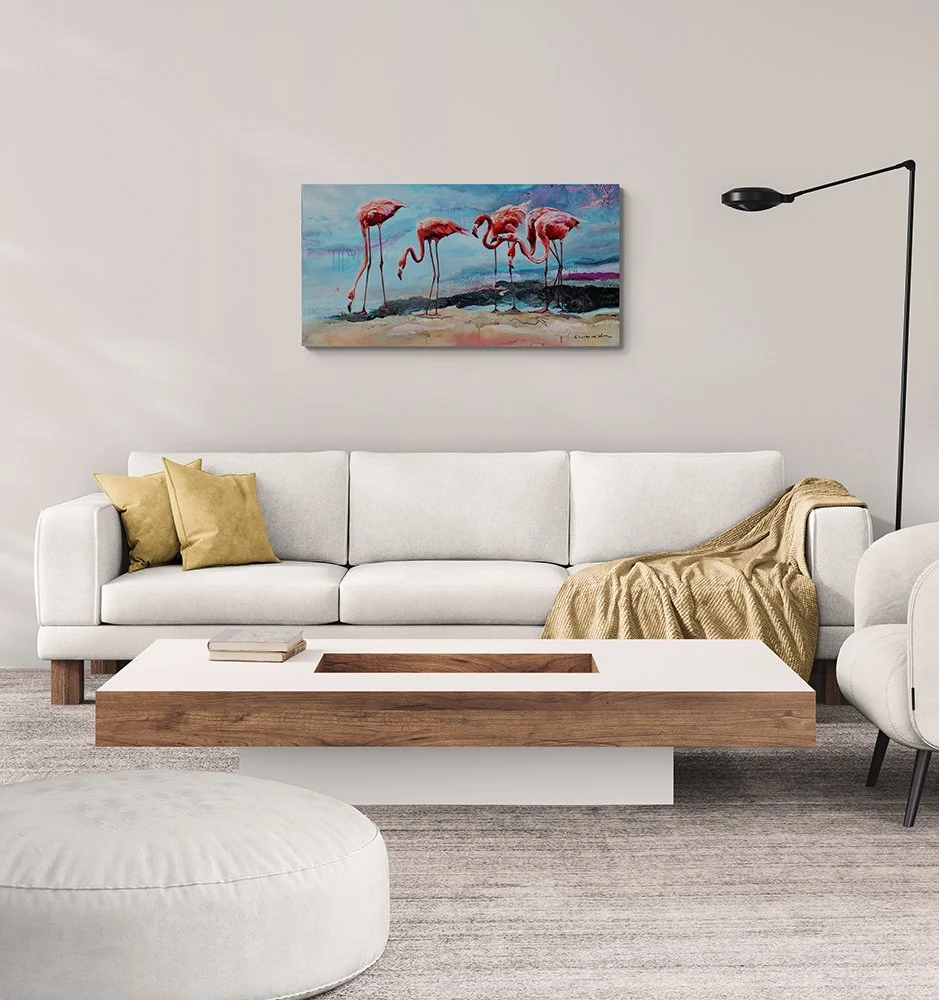 Embrace the vibrant hues of paradise with this stunning flamingo print which captures the playful energy and breathtaking beauty of these iconic birds. Bring the warmth of the tropics into your home with this captivating piece.