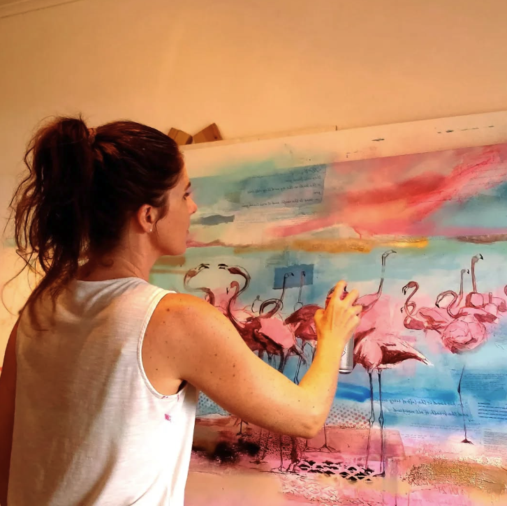 This breathtaking piece elicits a sense of peace and joy, capturing the vibrant energy of a flamingo flock against the calming backdrop of a serene lagoon. A stunning addition to any collection, evoking feelings of warmth, tranquility, and wonder.