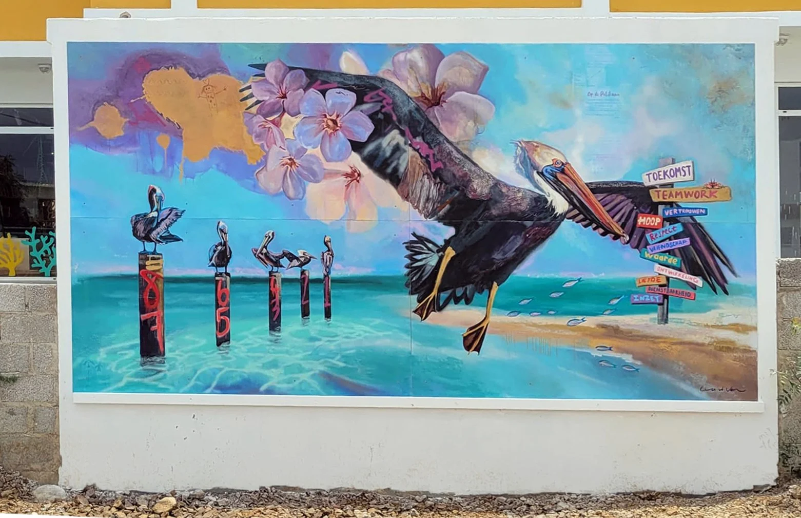 My outdoor murals are finished with a ColorShield/ UV coating specially designed for fine art mural preservation. It provides a flexible and breathable barrier that protects the paint against UV light, corrosion, and water damage. This innovative consolidant fuses paint layers while using UV absorbers to prevent fading, cracking, and chalking.