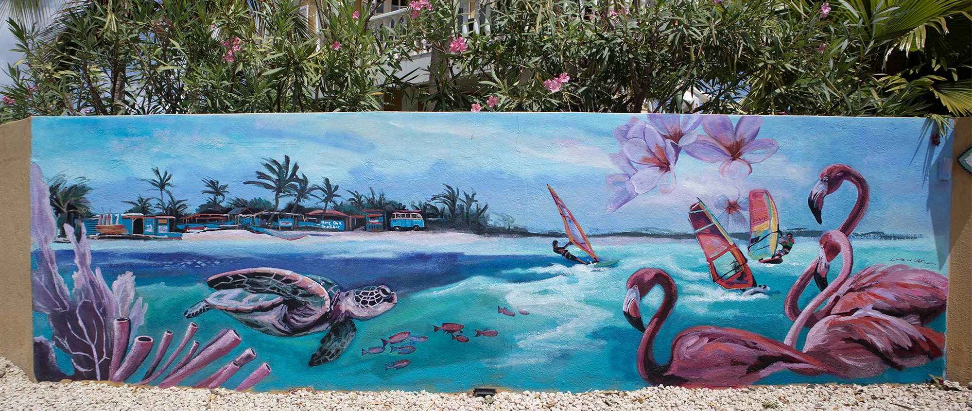 I use a variety of mediums on my murals but the majority of the artwork will be done with artist quality acrylic paint.