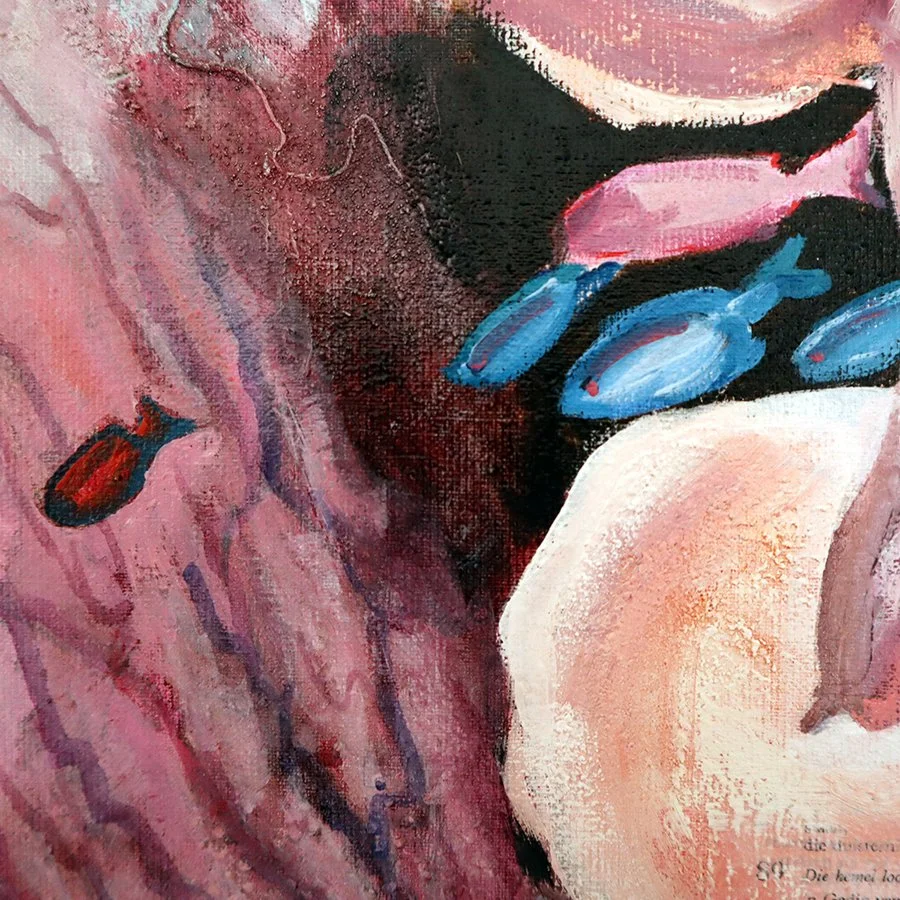 Original oil over mixed media painting
