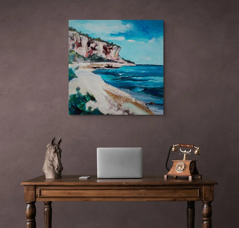 Find tranquility in this stunning coastal landscape. Bring the serenity of the sea and the drama of the cliffs into your home with this original artwork. Perfect for creating a peaceful retreat.